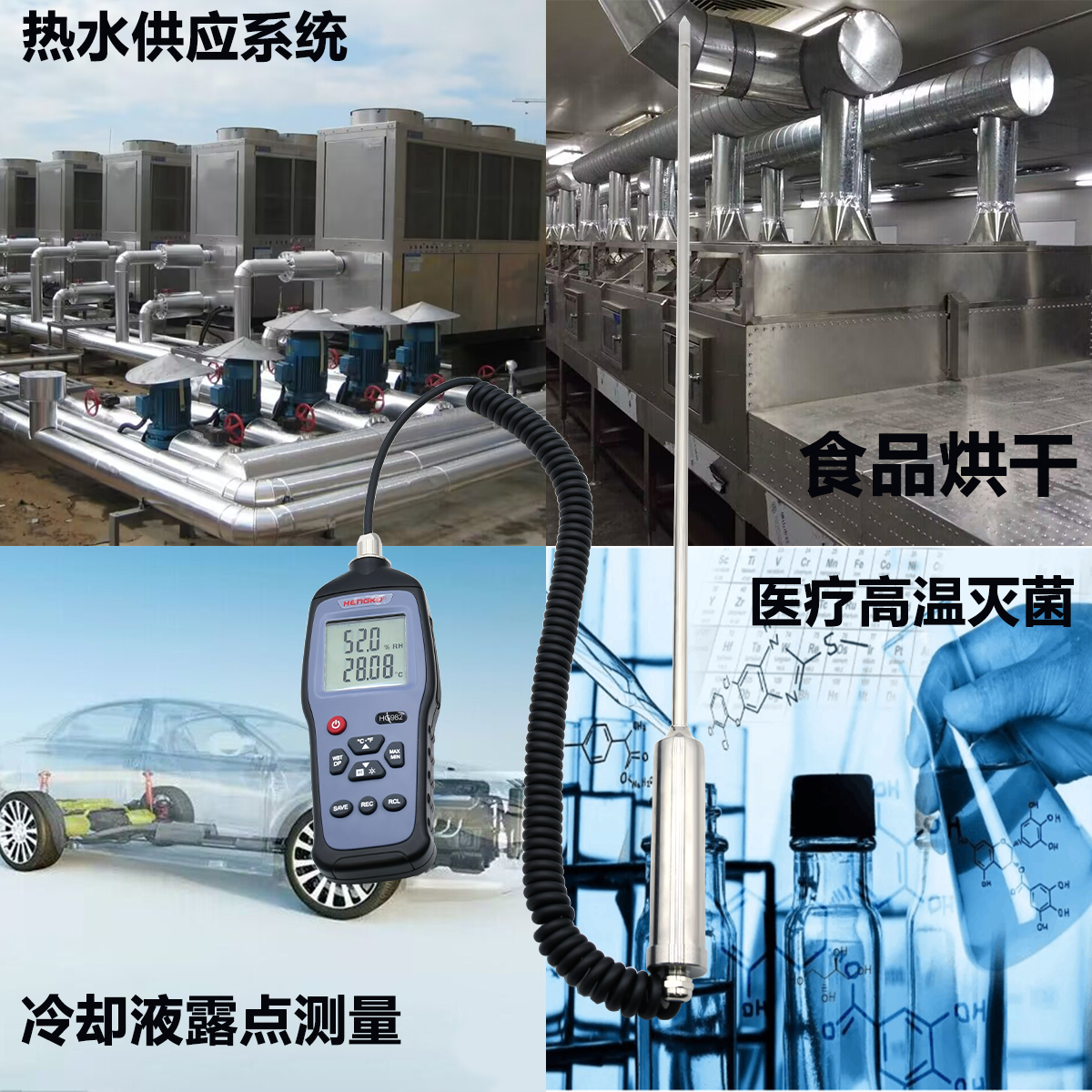 針對80~120℃高溫環(huán)境溫濕度和露點測試?yán)щy問題,研發(fā)的一款露點儀,范圍:-70~120℃的高溫手持表,同時測量溫濕度,露點,濕球數(shù)據(jù),實現(xiàn)一機(jī)多用。搭配強(qiáng)大的軟件功能,連接軟件可實現(xiàn)數(shù)據(jù)處理與可視圖表分析,報告可以PDF導(dǎo)出,數(shù)據(jù)可以csv、excel文件可輸出。